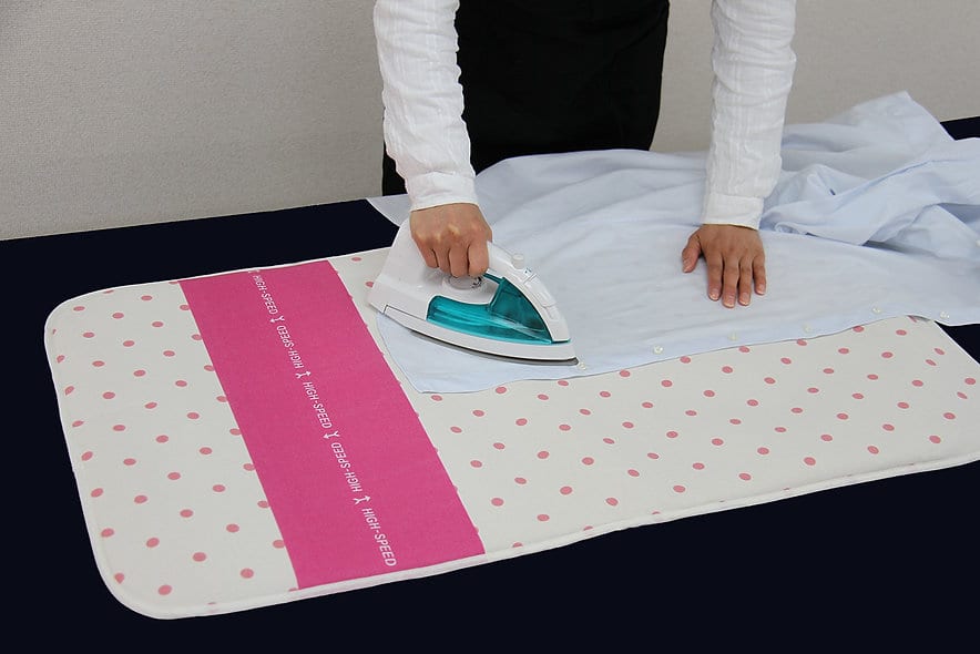 広げればアイロン台に早変わり!テーブル等の平なところでアイロン掛けが出来ます。